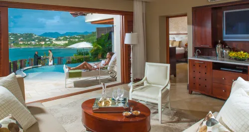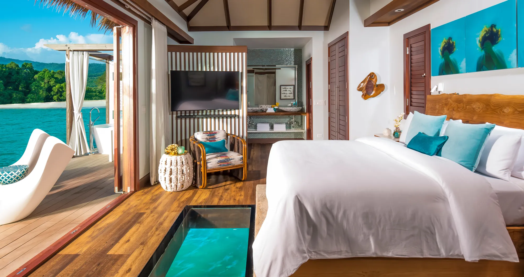 Sandals all-inclusive resorts know what they are doing when it comes to accommodations. Room layouts range from well-sized with a king bed to outstanding floor plans with 2 levels or even over the water.